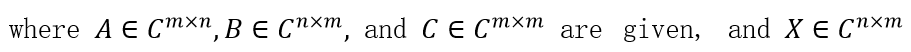The theoretical result was extended to the case where A and B are rectangular (m ̸= n). In this case, it was shown that (1) is equivalent to the generalized Sylvester equation [3]. However, when ⋆ = H, the same transformation cannot be applied to (1) because (1) is a nonlinear equation.