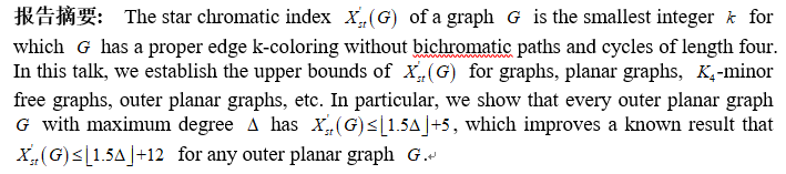 报告题目: Star Edge Coloring of Graphs