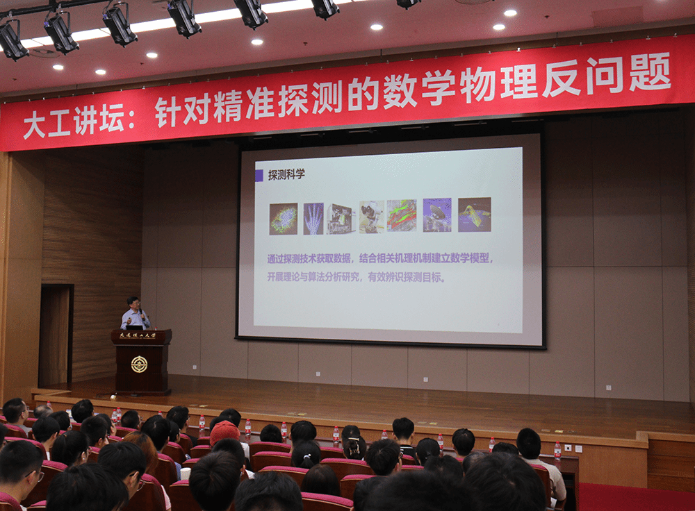 随后,包刚院士深入剖析了“反问题”这一数学物理领域的核心概念,通过列举反谱问题、Radon变换、地质反问题等生动实例,让师生们对这一抽象概念有了直观而深刻的理解。最后,包刚院士聚焦于波动方程反问题的最新研究进展及未来挑战进行深刻阐述,激发了在场师生对于数学物理交叉领域研究的浓厚兴趣。