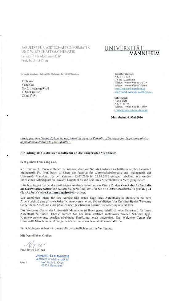 应 Li Chen教授 邀请,我单位 曹杨 拟赴德国 国家(地区)进行工作访问(学术交流)。现将该团组拟出访情况公示如下: